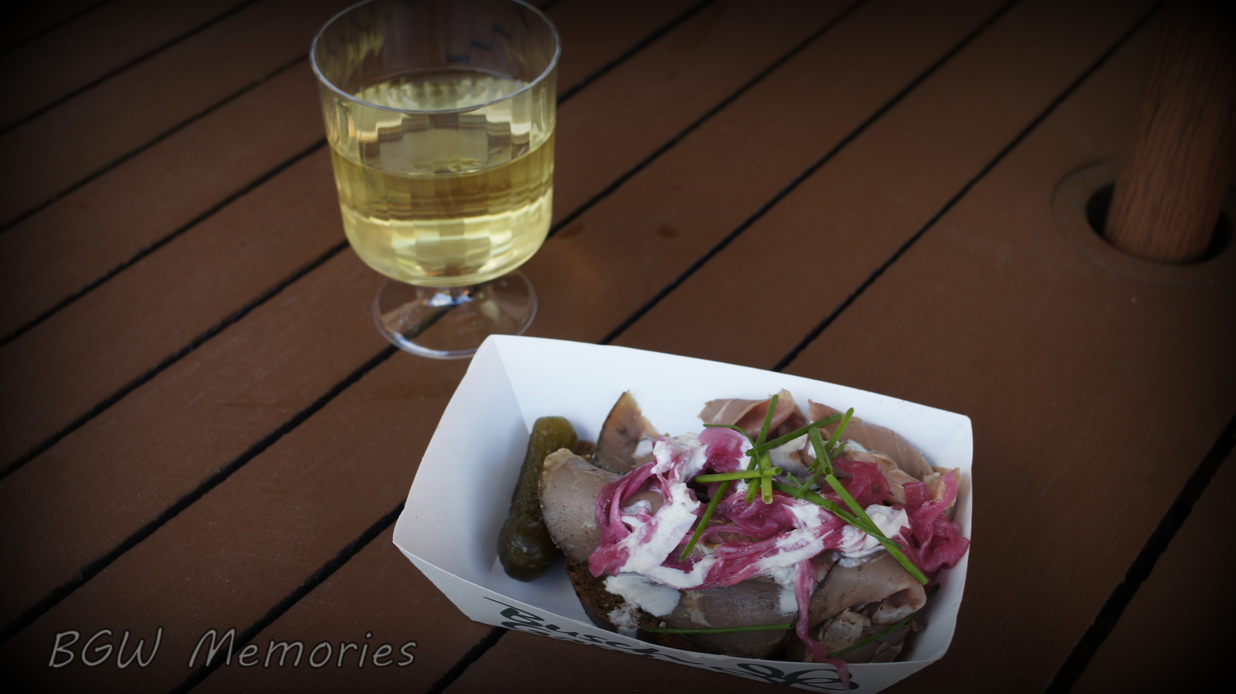 Scandinavia has my favorite dish so far. The Smorrebred is an open-faced roast beef sandwich on dark rye bread with horseradish & pickled red onions. It was so delightful and reasonably priced, I went back for seconds! It paired nicely with the Ingleside Chardonnay.