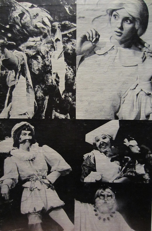 Then, just as Melinda is beginning to feel at ease with her ghostly companions, their merry-making is interrupted by the appearance of the witch from Macbeth and Caliban, the slimy monster from the Tempest. Dark sorcery turns the theater into an arena of sinister and terrifying occurrences. Even, Prospero, the kindly wizard from the Tempest, finds it dangerous to oppose these two masters of evil. In the great battle of sorcery that follows, he very nearly falls before Caliban’s power. It is Melinda, herself, with a courageous act of kindness, who finally restores harmony to the spirit world of the Globe and winds the gratitude of the theater’s ghosts.